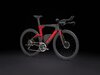 Einen ultraleichten Rahmen aus 800 Series OCLV Carbon, windschnittige Rohre mit Kammtail Virtual Foil Profil (KVF), eine Speed Concept Carbongabel mit aerodynamischem Profil, straßenglättendes IsoSpeed, integrierte Aufbewahrungslösungen für Verpflegung, Flüssigkeitsversorgung und Pannenkit, einen drahtlosen, elektronischen SRAM RED AXS 12fach-Antrieb der vorherigen Generation mit SRAM AXS Blips Schalthebeln, ein SRAM RED AXS Powermeter, eine integrierte Lenker/Vorbau-Einheit, einen triathlonspezifischen Bontrager Hilo Pro Carbonsattel, zuverlässige Scheibenbremsen und aerodynamische Bontrager Aeolus Pro 51 Laufräder aus OCLV Car