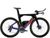 Einen ultraleichten Rahmen aus 800 Series OCLV Carbon, windschnittige Rohre mit Kammtail Virtual Foil-Profil (KVF), eine Speed Concept-Carbongabel mit aerodynamischem Profil, straßenglättendes IsoSpeed, integrierte Aufbewahrungslösungen für Verpflegung, Flüssigkeit und ein Pannenkit, einen drahtlosen elektronischen SRAM RED AXS 12fach-Antrieb mit SRAM AXS Blips-Schalthebeln, einen SRAM RED AXS-Powermeter, einen vollständig integrierten Lenker samt Vorbau, einen triathlonspezifischen Bontrager Hilo Pro-Carbonsattel für eine aggressive Aero-Sitzposition, zuverlässig zupackende Scheibenbremsen und aerodynamische Bontrager Aeolus RS